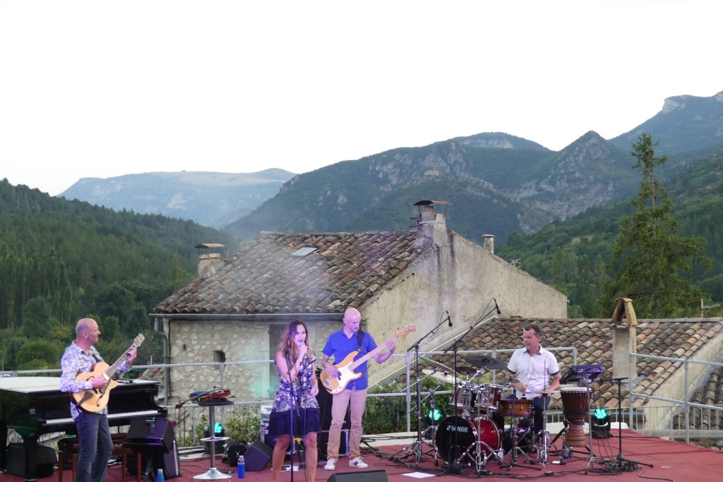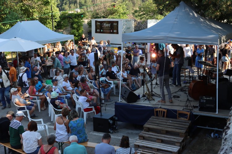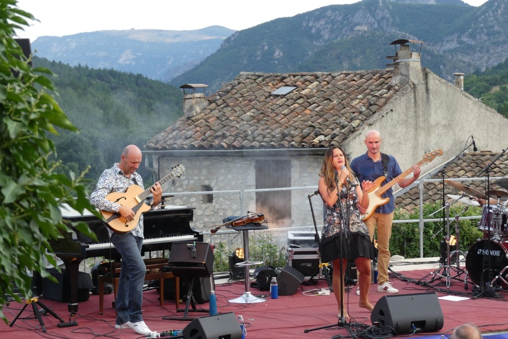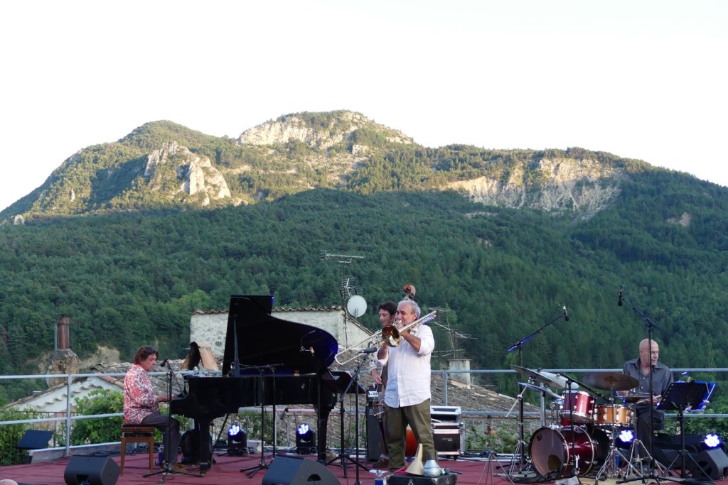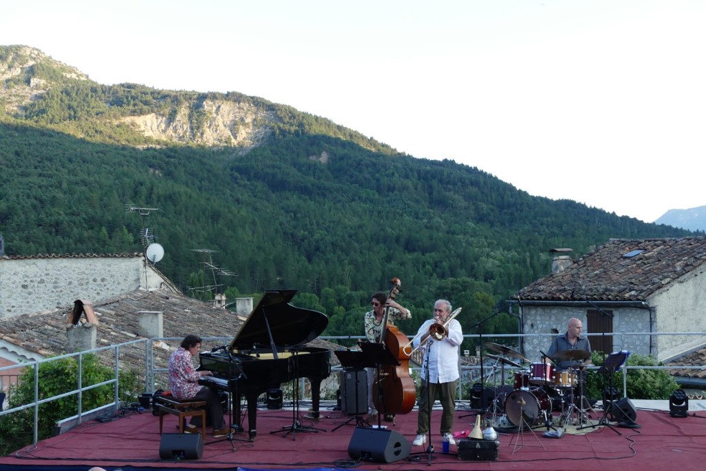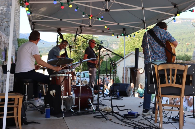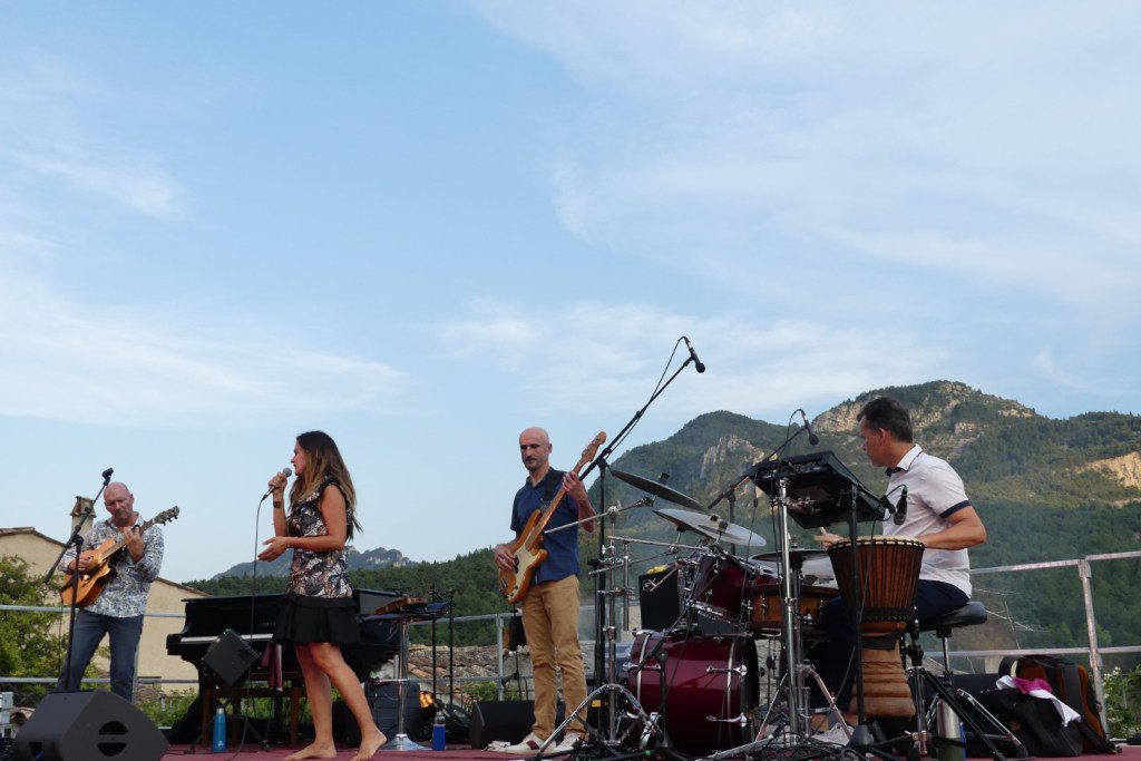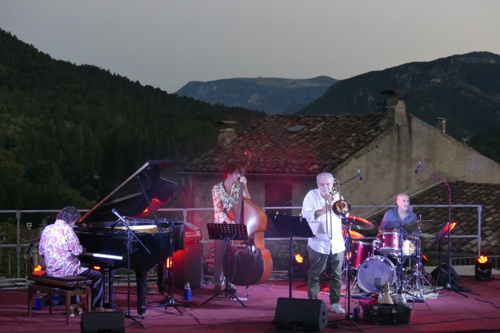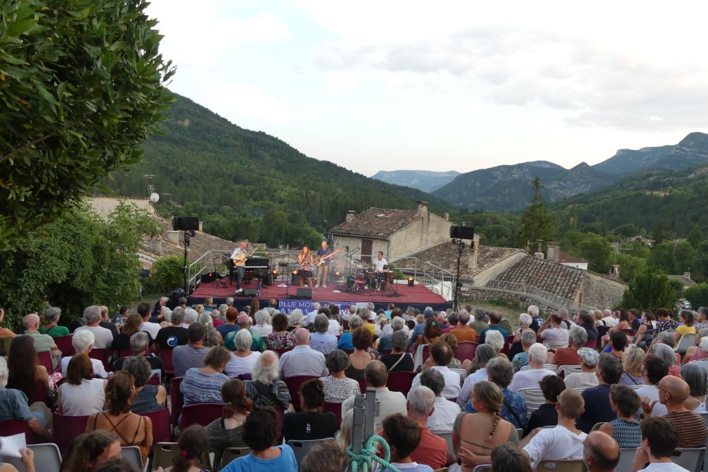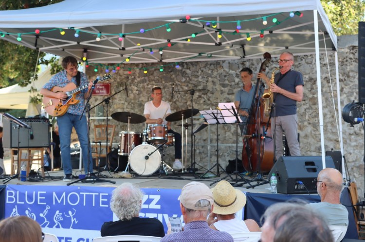 « Durant deux soirées, lundi 5 et mardi 6 août, le village a vécu une nouvelle aventure jazz avec l’édition 2024 de Blue Motte jazz, un événement immanquable. Un programme éclectique pour le plaisir de chacun, avec une première soirée académique, apéro avec jazz des sixties, et au théâtre de verdure Pierre Coulon Cerisier, qui revisitait les thèmes de Dollar Brand et ensuite Dmitry Baevsky et son quintet, un jazz virtuose et académique, avec un jeune trompettiste slovène de grand talent, Vid Sketa. Le mardi, on remettait cela, avec un soleil aux accents du sud, l’Argentine d’Antonella Lucia, une présence qui envoûtait le public, une voix superbe formant ensemble le Soary quartet, et au deuxième set, Catia Verneck et son quartet, dans la fabuleuse tradition de Tania Maria, qui l’a inspirée. Ce jazz métissé de bossa nova, une musique qui remue dès les premières mesures. De nombreux spectateurs sont des fidèles, présents aux précédentes éditions, et comme nous le disaient Michel et Véronique, venus des environs de Valence : « Nous allons souvent écouter des festivals de jazz, mais ici il y a une atmosphère unique. Il y a le jazz, certes, mais aussi le lieu qui est magique, avec la montagne derrière, les toits du village, un fond de scène qui contribue à la magie du moment. On reviendra ! »