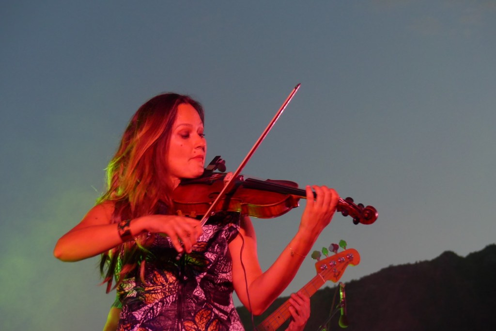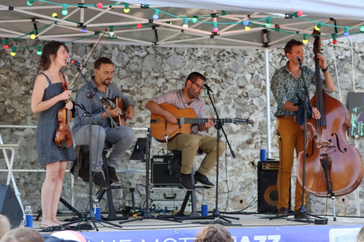 Cette seconde soirée a fêté le jazz du soleil, de la Drôme au Brésil en passant par l’Italie ! Sur la place, en accès libre à 18h et à 23h, le groupe BERZINGUE nous a emmèné faire un détour au pays du jazz de comptoir, répertoire populaire, énergique et envoûtant… Ils sont 4 drômois : Lucie Girard au violon, Ivan Gorlier et Cesar Nicolaïeff à la guitare, Maxime Tritschberger à la contrebasse, et en plus ils chantaient ! À toute berzingue, en valse ou en ballade, peu importe, on a vibré au son des cordes !
