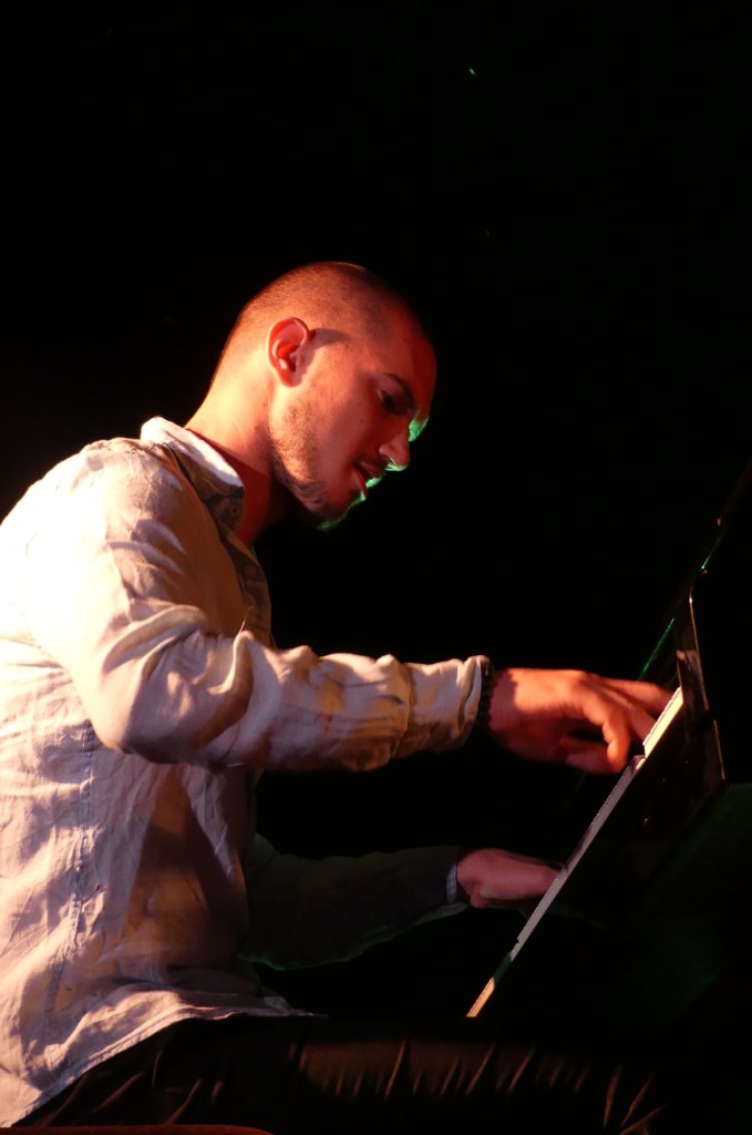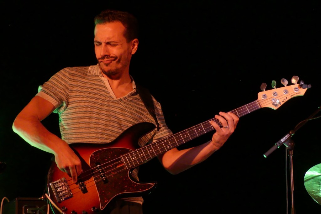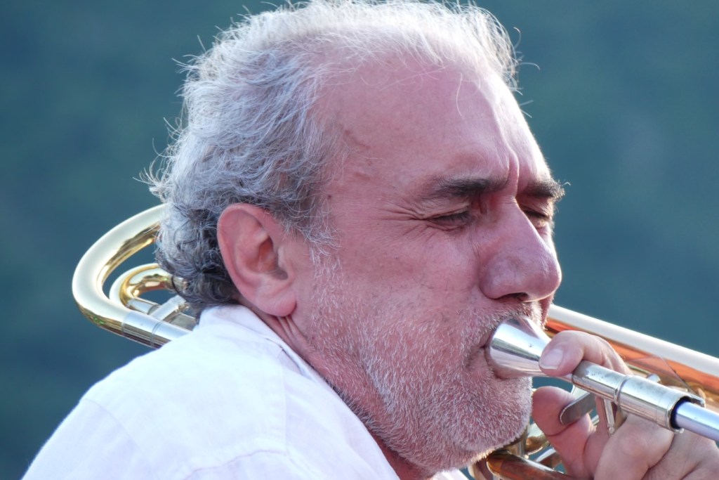« Ce quartet a été fondé il y a trois ans par le pianiste Pierre Coulon Cerisier à l’occasion d’une rencontre avec Beppe Caruso, tromboniste, tubiste, compositeur et arrangeur italien. Pierre Coulon Cerisier, peu connu sous nos latitudes (il vient de Montpellier) a collaboré dans le passé avec Glenn Ferris ; Jean-Marc Padovani ou encore Géraldine Laurent. Le leader nous avoue être très inspiré par le répertoire du pianiste sud-africain Abdullah Ibrahim (il préfère utiliser son pseudo Dollar Brand ) et s’inspire de son univers dans ses compositions. (Voir ici la chronique d’Abdulah Ibarahim en décembre 2023 à Grenoble) Avant le concert, Pierre Coulon-Cerisier nous explique que bien qu’il ne joue pas a priori du blues cette musique l’inspire aussi énormément dans sa démarche de création. Le set débute avec une composition Étoile du Sud en référence au blues qu’il affectionne… bien que ce ne soit pas du blues. D’entrée, on comprend que le set tournera autour des solos du tromboniste, tout en finesse et élégance, avec parfois quelques mesures peu orthodoxes et ceux du pianiste. Le duo est musicalement très solide et soudé. Arrivent ensuite deux autres compositions, Spécial B. et Two couleurs blues La composition La nuit au Salagou fait référence à un lac de leur région du Lodève, endroit magnifique (seul bémol, il est également très apprécié des moustiques !). La ballade du concert sera Bleue ta nuit, la batterie se fait très discrète, idem la contrebasse pour tisser une structure des plus calmes pour le trombone qui joue tout en douceur. Retour à du « musclé » avec une composition au titre provisoire « numéro 9 ». Calypso minor est un morceau de Dollar Brand, il débute par un solo de contrebasse. Le dernier morceau s’appelle Calder mobile car « on se demande comment il tient debout » nous dit Pierre Coulon-Cerisier… ce qui n’est pas faux. Beppe nous offre un drôle de chorus avec son trombone et sa sourdine. Ce set aura été une belle découverte d’une formation de PACA »