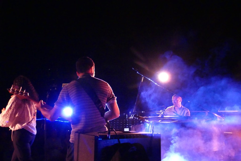A 20h dans le jardin du fort en 1ère partie SOARY QUARTET a dévoilé son univers jazzy, ses chansons aux couleurs latines qui puisaient leur énergie dans des rythmes venus d’Afrique. A l’origine du groupe, la chanteuse Antonela Lucía et le guitariste Cyril Salvagnac soutenus par Fabrice Camboulive à la contrebasse ou à la basse électrique et par Laurent Meyer aux percussions. Iks ont tendus un pont musical imaginaire entre les bords de la Méditerranée et le Brésil!