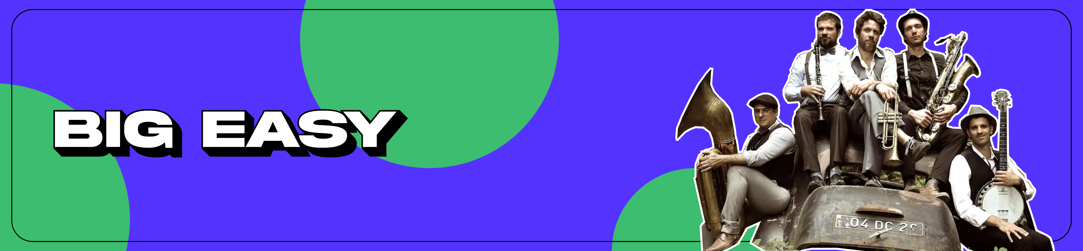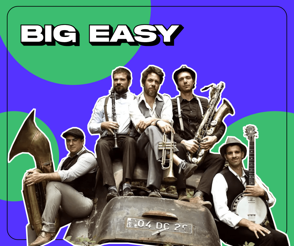 « Big Easy » c’est le surnom de la Nouvelle Orléans, ville de l’état de Louisiane doucement décadente, tantôt langoureuse, tantôt frénétique… Le groupe Drômois composé de 5 musiciens (trompette, clarinette, saxophone, voix, tuba et banjo) vous fait voyager sans escale jusqu’à la Nouvelle Orléans du début du siècle dernier. L’énergie de l’ensemble est communicative et invite à la danse; les rythmes tapageurs des premières heures du jazz (New Orleans, Ragtime, Blues) ! Et oui c’etait un bal jazzy qui a clôturé cette 8ème édition du Festival !
