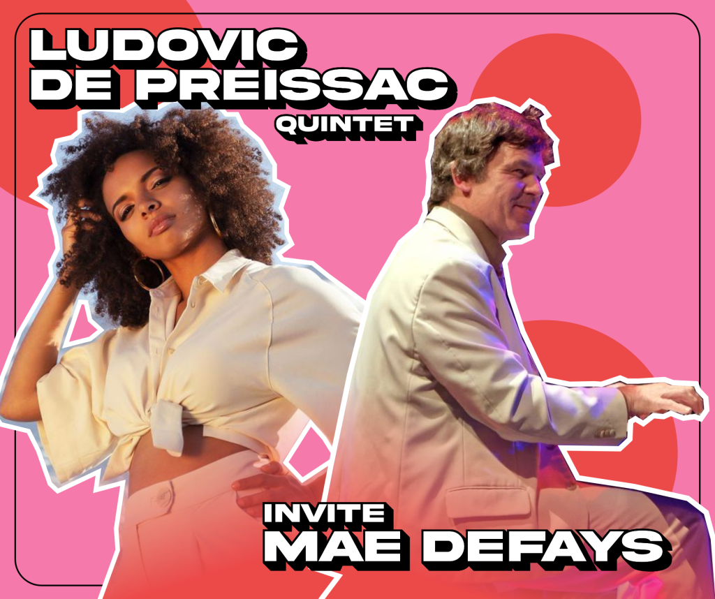 Tout d’abord inspiré par les quintets légendaires américains des années 50/60 (Horace Silver, Art Blakey et les Jazz Messengers) leur répertoire original et leur « son » imposent le QUINTET DE LUDOVIC DE PREISSAC comme un incontournable ! La formation rassemble Ludovic de Preissac (piano, compositions et arrangements) Michael Joussein (trombone et congas) Maxime Berton (saxophone tenor et clarinette basse) Cédric Caillaud (contrebasse) et Germain Cornet (drums). Au service d’un jazz dynamique qui favorise autant l’interprétation que la présence scénique, ce quintet offre sur scène une prestation jubilatoire. Le quintet a invité MAE DEFAYS à le rejoindre au chant pour la 2nde partie du concert, ils ont joués un répertoire de compositions originales jazz et latines ainsi que des arrangements de standards du jazz vocal.