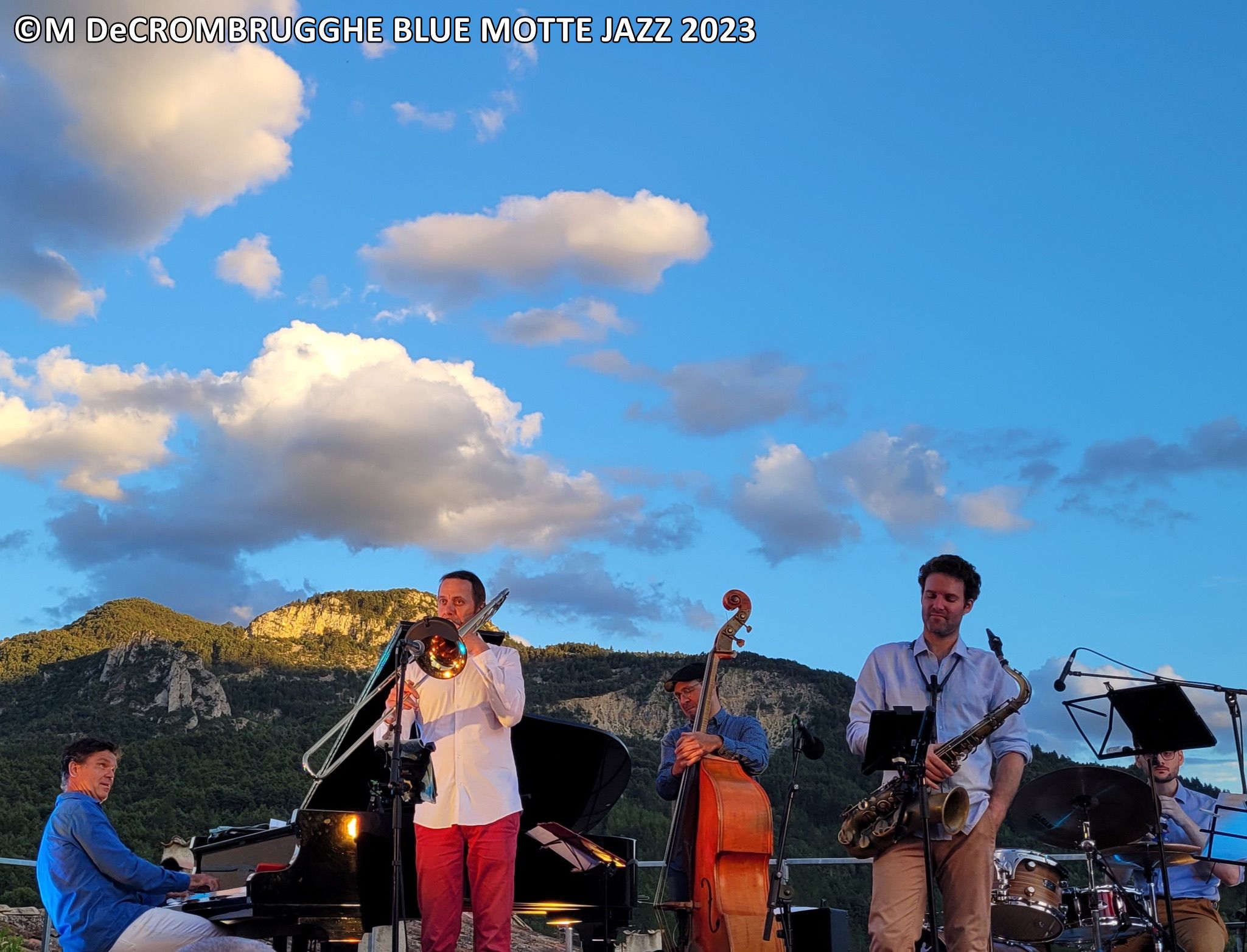 « C’était la fête du jazz à La Motte-Chalancon les lundi 31 juillet et mardi 1er août 2023. L’équipe du Blue Motte jazz festival a concocté un programme éclectique pour satisfaire tous les spectateurs[…]. Des concerts mais aussi des apéros jazz gratuits, comme les after ou le bal de clôture, et [une guinguette] pour se restaurer chaque soir et passer un bon moment entre amis place du Fort, en haut du village. Pour les aficionados, lundi soir, Lisa Jazz trio et Cécile Messiasz se sont produit, tandis que mardi, Ludovic de Preissac, après sa première partie, a invité Mae Defays. Un after et un bal a completé ces deux soirées. Des soirées dans un bel écrin de verdure avec un fond de scène unique, les toits du village et la montagne de Longeserre. »