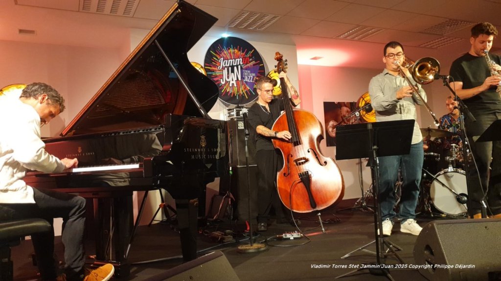 Autour de Vladimir Torres, son trio à l’identité musicale singulière bien reconnaissable et au jeu collectif télépathique, composé de Martin Schiffmann au piano et Tom Moretti à la batterie. En invités, les complices Damien Groleau au piano, Hugo Diaz au saxophone soprano et Constantin Meyer au trombone.